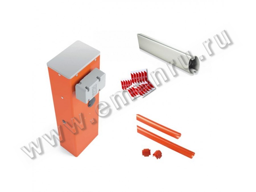 Комплект автоматического шлагбаума, длина стрелы 4 м, напряжение двигателя 24 В, скорость открывания 4 м/с, интенсивность 100 циклов/час, 1000х280х178 мм. Тумба шлагбаума WIDE S, стрела XBA19, защитный демпфер XBA13, светоотражающие наклейки NK1