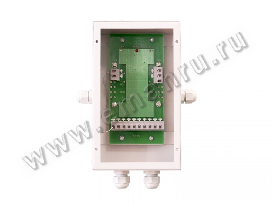 Контроллер для подключения к сигнальному шлейфу с интерфейсом RS-485 двух исполнительных устройств и управления ими при помощи контактов реле. Крепление на DIN-рейку.