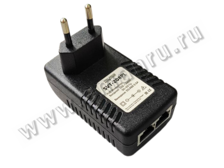 PoE инжектор, предназначенный для подачи питания на сетевое устройство по кабелю "витая пара". PoE инжектор стандарта IEEE 802.3af выполнен в виде адаптера, включаемого в электрическую розетку. На входе подключается Ethernet без PoE, а на выходе - Ethernet с поддержкой PoE питания.